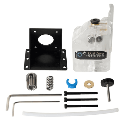 El sistema tipo BMG de doble tracción (dual drive) te va a permitir generar un empuje del filamento en forma homogénea y continua, muy superior a los sistemas de un solo engranaje. Por su parte, también cuenta con una reducción de engranaje con relación 3:1, esta relación aumenta sustancialmente la fuerza de empuje, permitiendo de esta forma, lograr con ambos sistemas un control muy preciso y eficaz sobre el flujo del material extruido y por ende, la impresión final lograda.