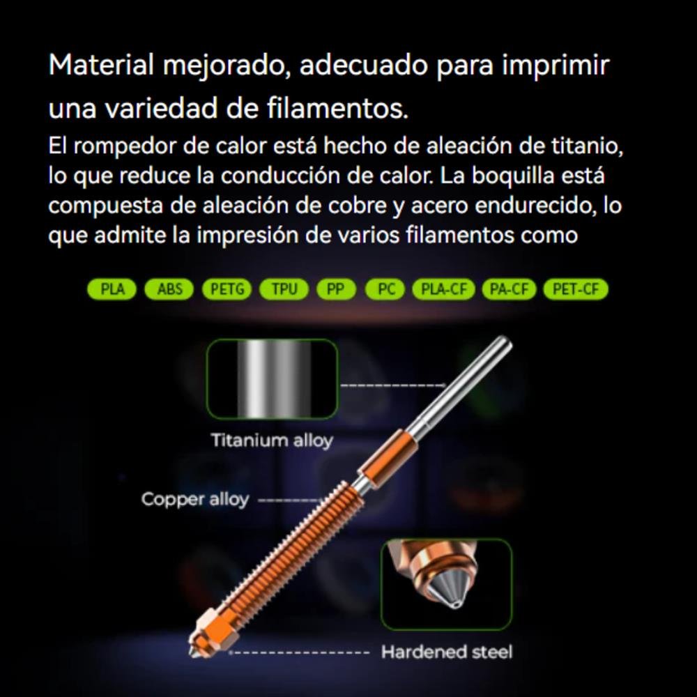 Filamentos compatibles: PLA, ABS, PETG, TPU, PP, PC, PLA-CF, PA-CF, PET-CF, etc.