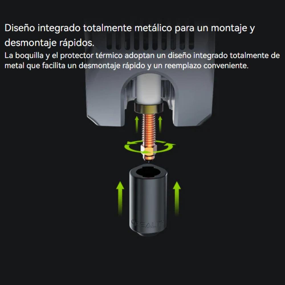 Cámara de boquilla agrandada, que logra un caudal máximo de hasta 30 mm3/s y admite impresión a alta velocidad a 600 mm/s