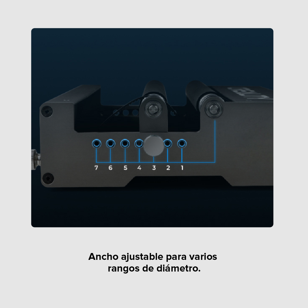 - Permite ajustar el rango de anchura abarcando varios intervalos de diámetros. Ofrece siete alternativas de tamaños distintos.